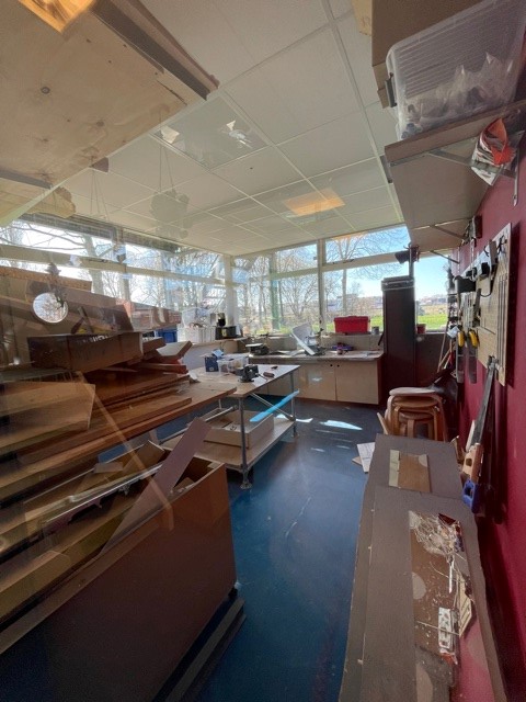 Wij hebben een eigen gebouw dat ruim is. Het is ruim 1300 m2, dit is op drukke dagen 6m2 per kind, bijna het dubbele van de norm. Er zijn meerdere ateliers. De inrichting van het gebouw is niet netjes, rustig en overzichtelijk, maar juist avontuurlijk en enigszins chaotisch. De meubels en materialen zijn vaak goedkoop, gekregen en gemakkelijk vervangbaar. De inrichting wisselt regelmatig. Er is een grote zolder waar veel spullen en materialen opgeslagen liggen die voor allerlei initiatieven gebruikt kunnen worden. Denk aan: waterbakken; zeil; piepschuim; balken; pallets; kratten; autobanden; doeken; themabakken; wisselspeelgoed; bamboestokken; tenten; visgerei. Het hele gebouw ademt uit dat het gebruikt mag worden en er niet zuinig mee omgegaan hoeft te worden. Tegelijkertijd proberen we een sfeer van huiselijkheid te creëren.