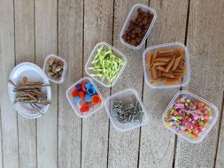 Combineer naar hartenlust je materialen. Op deze manier blijft het voor de peuters aantrekkelijk. Je kunt bijvoorbeeld verschillend materiaal combineren met bakjes en lepels. Ook deze lepels en bakjes zijn van verschillend formaat. Het materiaal vraagt allemaal iets anders van de peuters. Zo zijn rijstkorrels heel licht en houten kralen zwaarder. De kinderen kunnen met deze combinatie heel goed spelenderwijs oefenen met de rekenbeginselen.