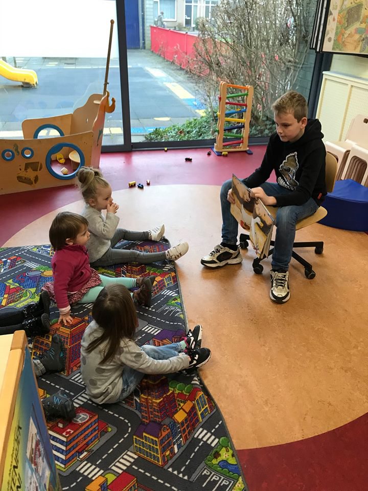 Op de kleinschalige BSO’s 0-12 zijn de oudere kinderen erg betrokken bij de jonge kinderen. Als ze uit school komen, willen ze graag weten hoe het gaat met de andere kinderen. Er wordt voorgelezen en samen gespeeld. Als er een gezelschapspelletje wordt gespeeld, kijken de baby’s mee en zitten de peuters er ook bij. Er ontstaat een hele huiselijke, gezellige sfeer met persoonlijke aandacht. Iedereen is betrokken bij elkaar.